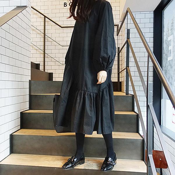 ワンピース バルーンスリーブ袖 コットン ルーズフィット ワンピース 3色 9 バルーンスリーブ ファッション ファッションアイデア